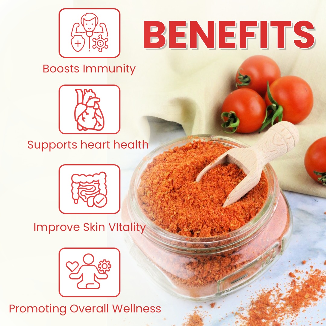 Tomato powder is a concentrated source of nutrients and antioxidants known to support overall health: